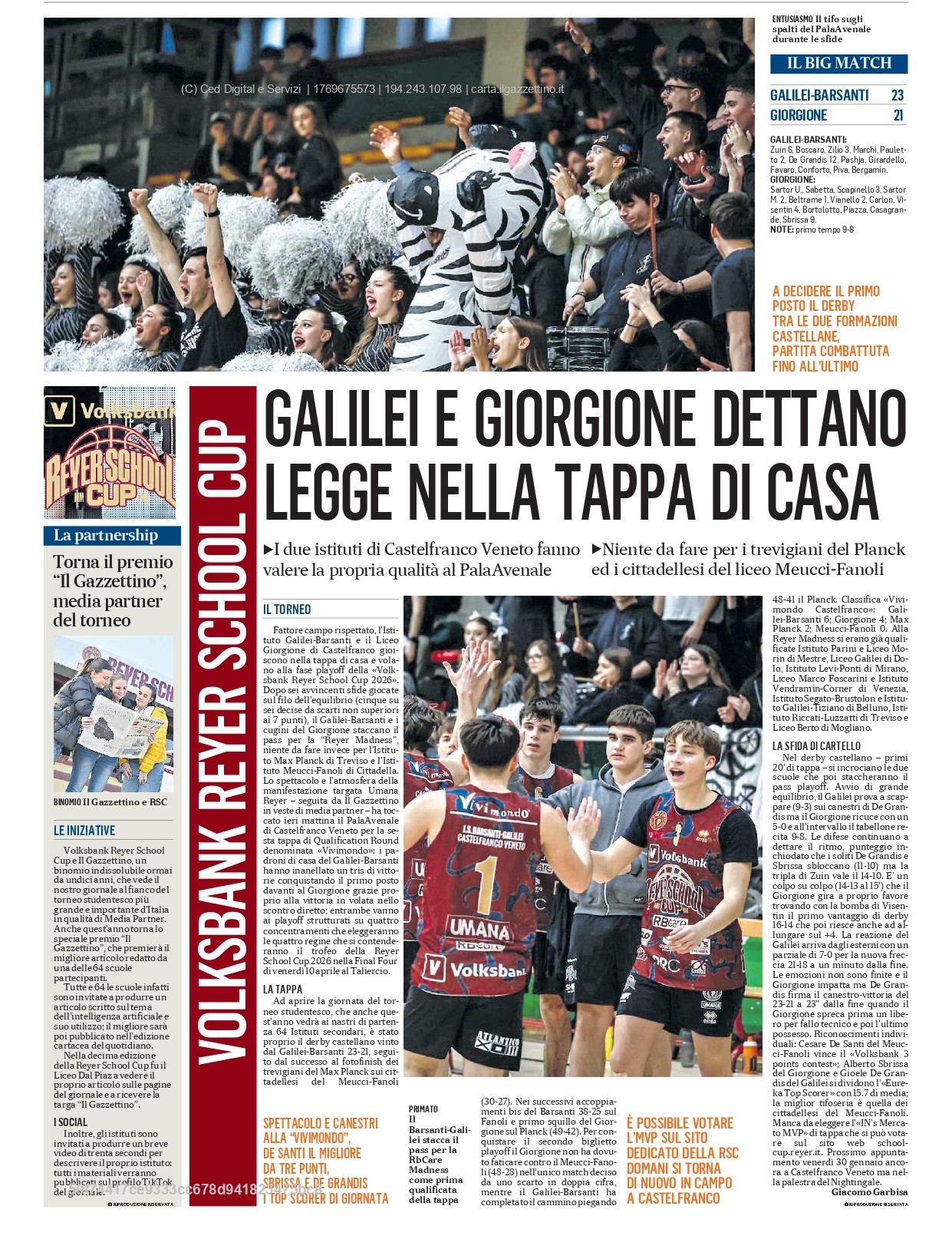 Home » 2026 » Rassegna Stampa » Galilei e Giorgione dettano legge nella tappa di casa – Il Gazzettino di Venezia