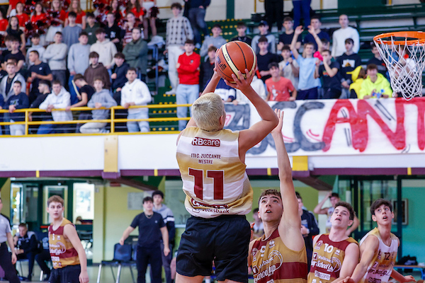Avvio equilibrato, 10-10 al 4’. Il San Marco trova in Zanin il terminale offensivo principale, con triple e canestri in prossimità del ferro, dalla parte opposta lo Zuccante risponde con un super Camporese che nel pitturato fa la voce grossa, così come dalla lunga distanza 20-12 al 7’. I ragazzi dello Zuccante fanno prova di forza e allungano in modo deciso guidati dal solito Camporese e Tommaso Uccelli, 25-13 all’8’, di puro orgoglio arriva la reazione del San Marco che lima il divario e alla prima sirena il punteggio recita, 25-17. Zuccante che spinge ancora a inizio secondo tempo e accumula la doppia cifra di vantaggio sul 32-19 al 12’ grazie alle transizioni di Rorato, lo stesso Rorato esegue una super stoppata, una delle giocate difensive più belle della tappa: è lui il dominatore di questa fase della partita. A metà secondo tempo, 39-23 il punteggio, il San Marco si affida soprattutto al talento offensivo di Zanin, ma non è sufficiente per fermare la grande energia dello Zuccante che vince la sua seconda gara della tappa. 45-28 il finale.