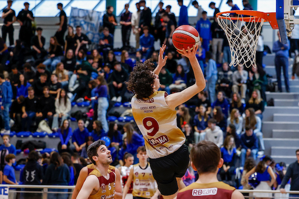 Grande equilibrio in avvio del match, 7-7 al 3’ con la bomba del Nievo griffata da Ludovico Varotto. Intanto Formentin del Newton si esibisce in una stoppata abbacinante sul punteggio di 7-8 per la formazione di Camposampiero. Torna avanti il Nievo, 16-10 al 6’ sempre grazie al giocatore più talentuoso della tappa, ossia Pietro Zambello. Ma non è finita perché i ragazzi di Padova allungano con decisone per merito di due triple consecutive di Isacco Marchet, 23-13 all’8’. Alla prima sirena 25-17 il risultato. La terza bomba di Marchet vale il massimo vantaggio Nievo, 30-19 al 13’. La squadra di Padova poco dopo vola via sul 35-21, a metà del secondo tempo, con un paio di transizioni vincenti dei propri esterni che non lasciano più modo di rientrare al Newton-Pertini. 40-24 il finale.