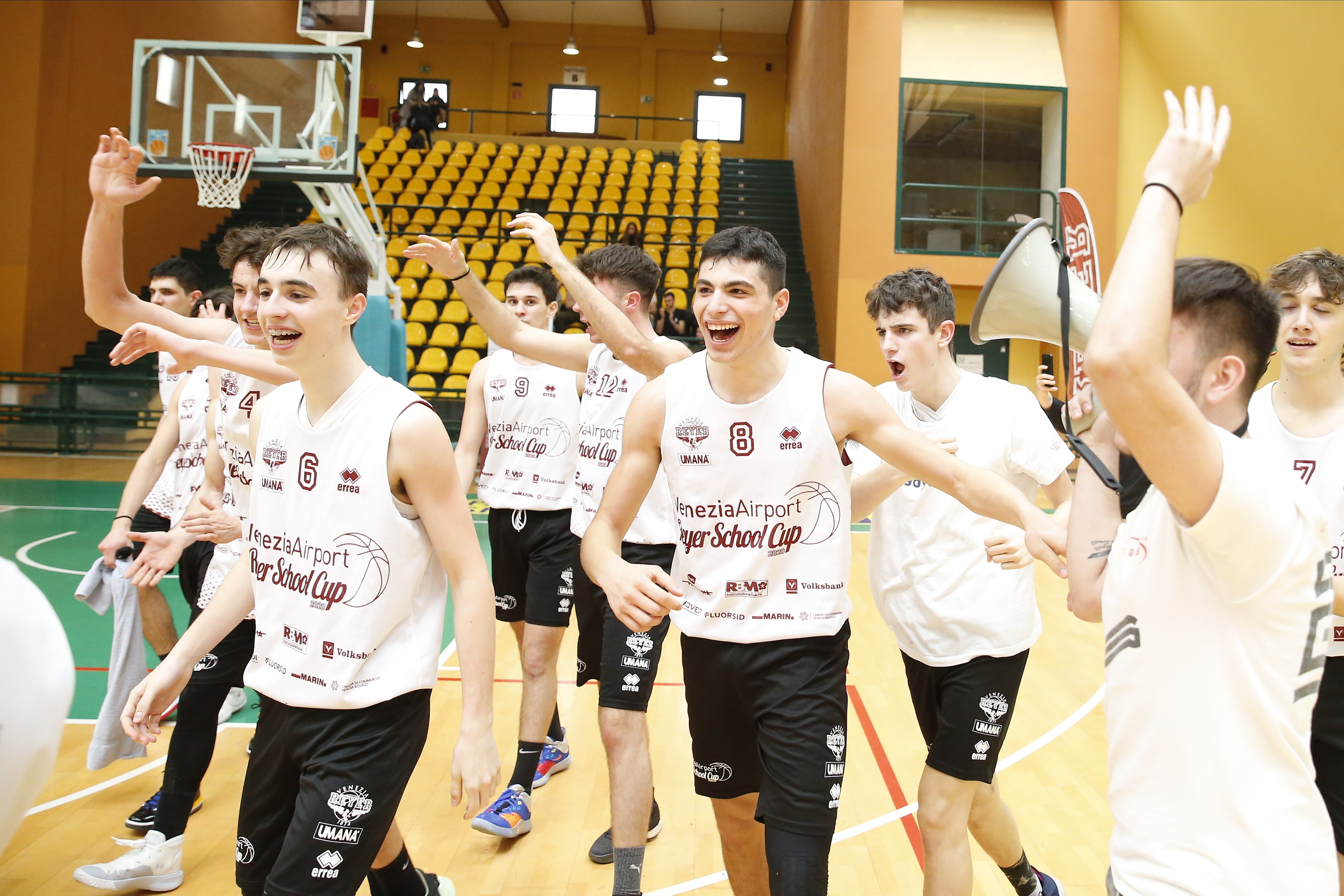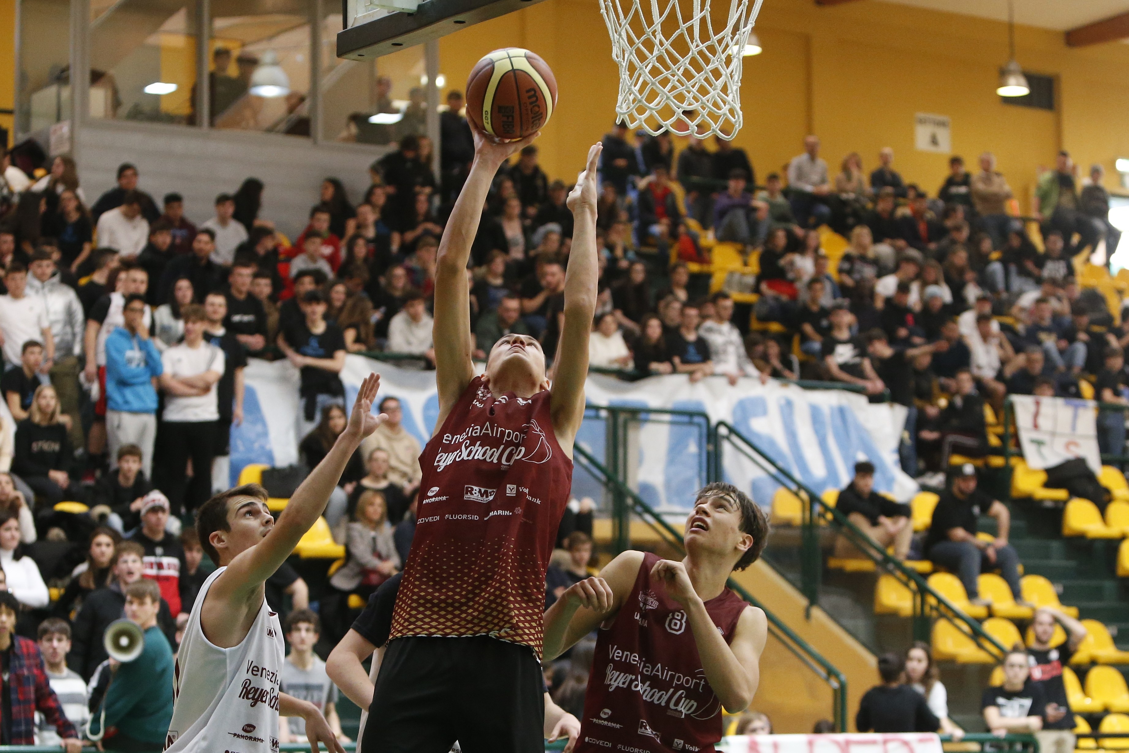 Seconda tappa della Conference Oro (quarta assoluta) della Venezia Airport Reyer School Cup 2020, la “Ducale Jesolo”, ricca di emozioni e spettacolo, in campo e sugli spalti, al PalaCornaro, Al termine di una mattinata di incontri tiratissimi, i due pass per la fase Reyer Madness vanno agli Istituti Volterra e Alberti di San Donà di Piave, rispettivamente primo e secondo dopo lo scontro diretto che ha chiuso la tappa.