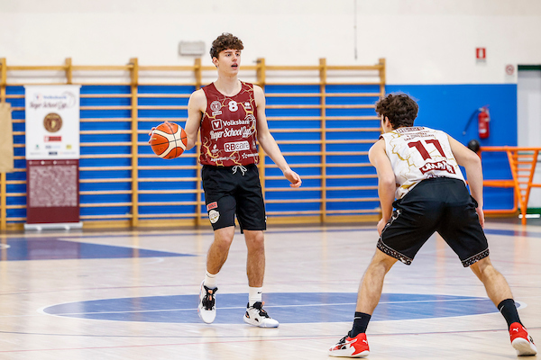 Siamo al giro di boa della quarta tappa. Si gioca un derby tra i due istituti di San Donà. La palla a due la alza il capitano dell’Umana Reyer Venezia Michael Bramos, Iron Mike, per la gioia unita all’emozione dei ragazzi in campo. Vittoria sul fil di lana dell’Alberti per 36-34 sul Volterra. Primo tempo il punteggio recitava 26-13 per l’Alberti che ha sfoderato tutto il proprio arsenale offensivo. Il Volterra, però, getta il cuore oltre l’ostacolo e recupera tutto il divario grazie anche alle scelte tattiche del player manager Toiepolado: perfetta parità sul pari 34 con la tripla del cecchino Riccardo Cerchier a 1’34” dalla sirena finale. Decidono i liberi di Trevisan per il +2 finale.