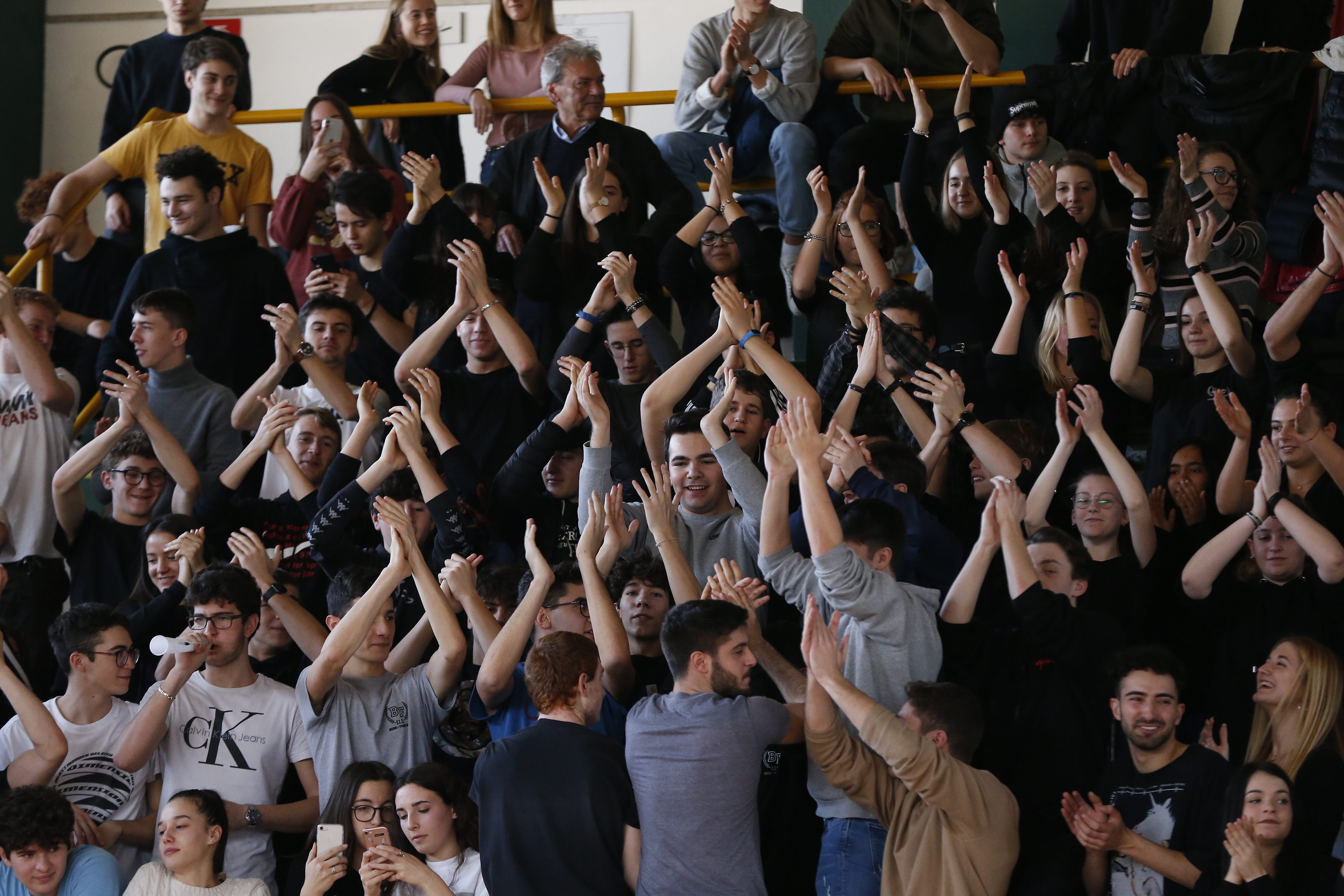 C’è però un vincitore: è il settore bianco-blu del Liceo Morin di Mestre, pentole, trombe, tamburi, striscioni e quanta, ma quanta voce…e poi la chicca finale, un Cheerleading Team che ha letteralmente incantato gli spettatori sugli spalti e “distratto” i giocatori in campo!